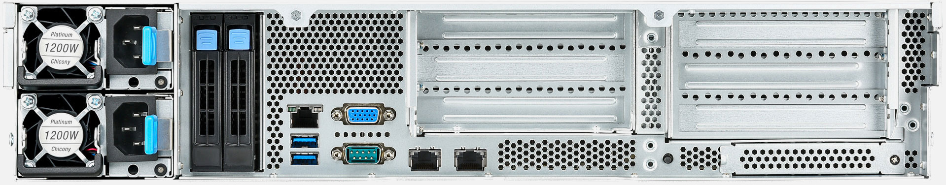 2U1S Storage Server, hybrid NVMe/SAS/SATA BP, 12 SFF. 2x FH/HL PCIe Gen 5.0 x16 slots. 12x NVMe hot swap drive bays, 1200W Redundant power supply. Dual 10GbE Base-T LAN.