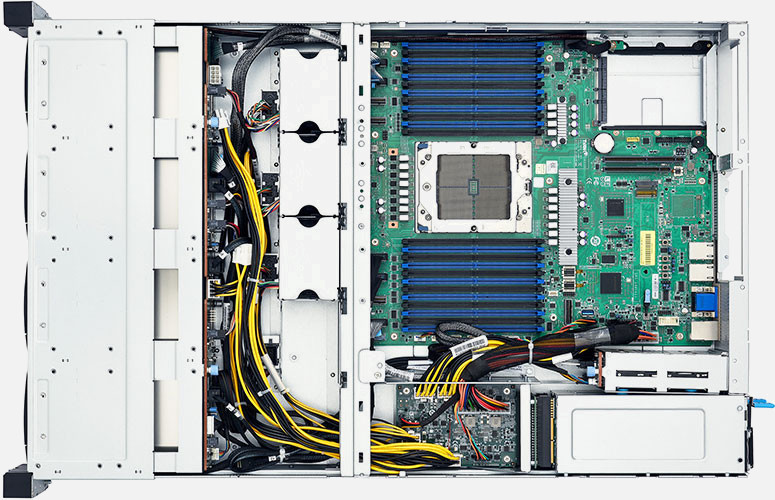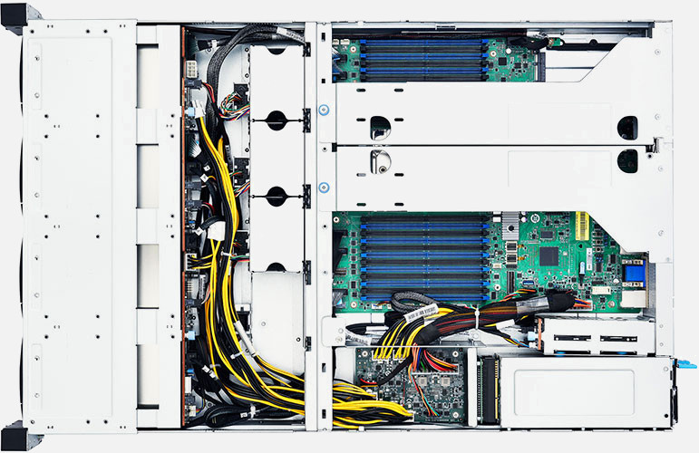 This server supports SATA drives, which are very cost-effective and adept at dealing with mass storage.