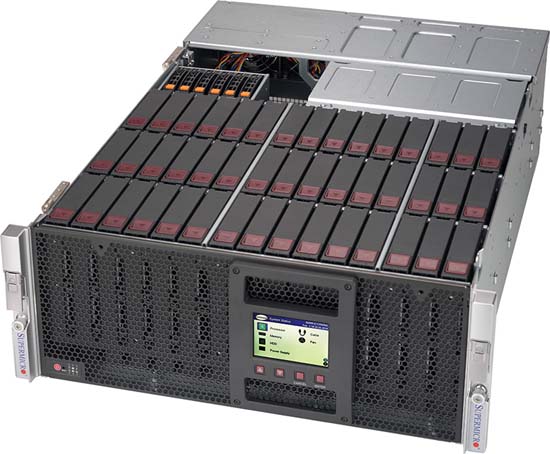 The Supermicro SSG-6049P-E1CR45L SuperStorage | 6049P-E1CR45L features hot-swap hard drives, giving you more flexibility and allowing you to remove drives without having to shut down the system.