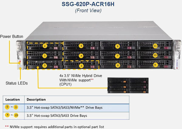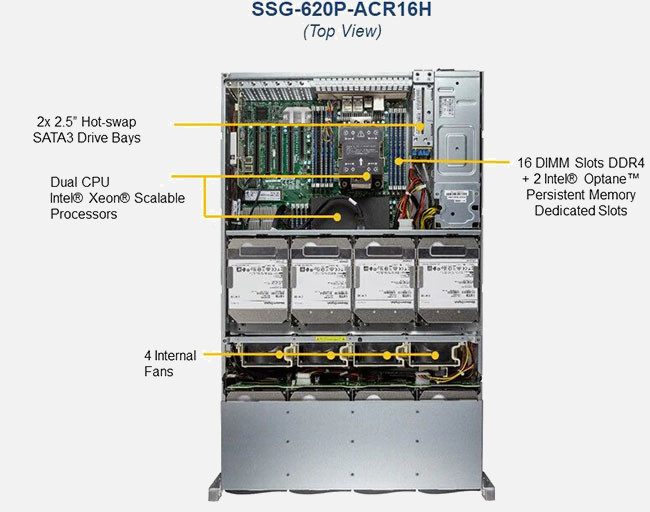 Configure the Supermicro Storage SuperServer SSG-620P-ACR16H | SSG-620P-ACR16H with 3.5" drives. These drives are more cost-effective, offer a larger storage capacity and offer more flexibility.