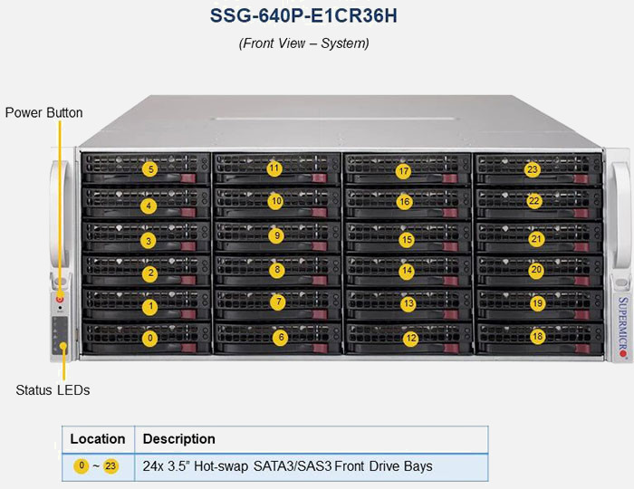 The Supermicro Storage SuperServer SSG-640P-E1CR36H | SSG-640P-E1CR36H features hot-swap hard drives, giving you more flexibility and allowing you to remove drives without having to shut down the system.