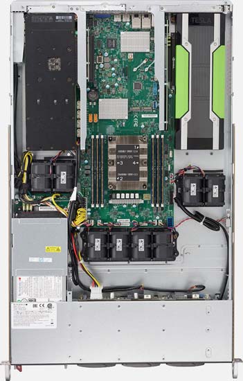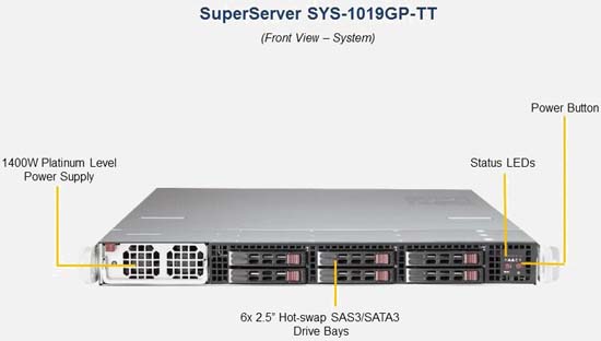 This system can be configured with 6x hot-swap 2.5 SAS/SATA drives and is equipped with 2x PCI-E x16 expansion slots. For power it features a 1400W high-efficiency power supply and for networking it has 2x 10GBase-T LAN ports via Intel X550.