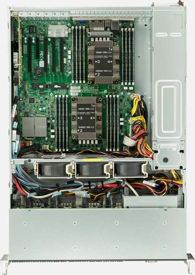 This system is capable of supporting up to 12 DIMMS per CPU. That’s a significant advancement on the previous limit, which was 9 DIMMS per CPU.
