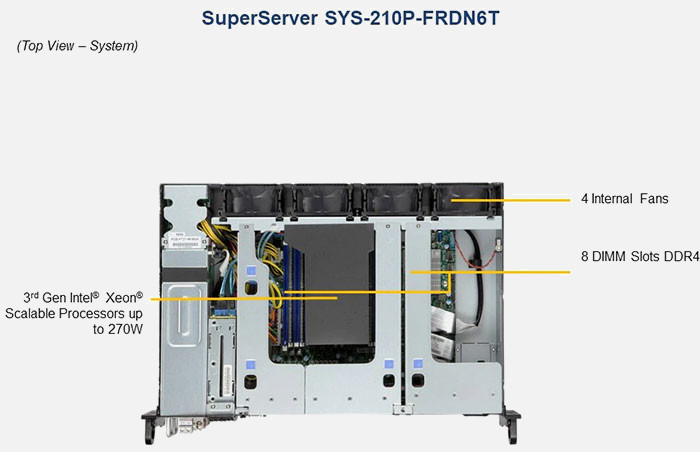 The Supermicro IoT SuperServer SYS-210P-FRDN6T | SYS-210P-FRDN6T can be configured with 2.5" drives, a more space efficient and low noise option. These drives also offer energy savings and increased flexibility.