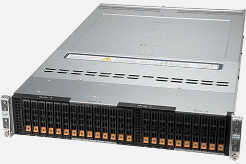 The Supermicro BigTwin SuperServer SYS-220BT-HNC8R | SYS-220BT-HNC8R can be configured with 2.5" drives, a more space efficient and low noise option. These drives also offer energy savings and increased flexibility.