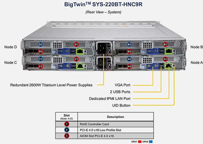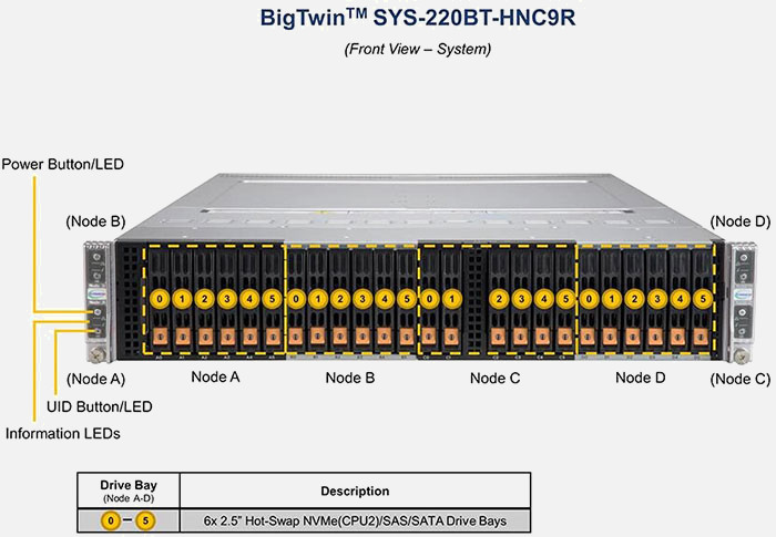 The Supermicro BigTwin SuperServer SYS-220BT-HNC9R | SYS-220BT-HNC9R features hot-swap hard drives, giving you more flexibility and allowing you to remove drives without having to shut down the system.