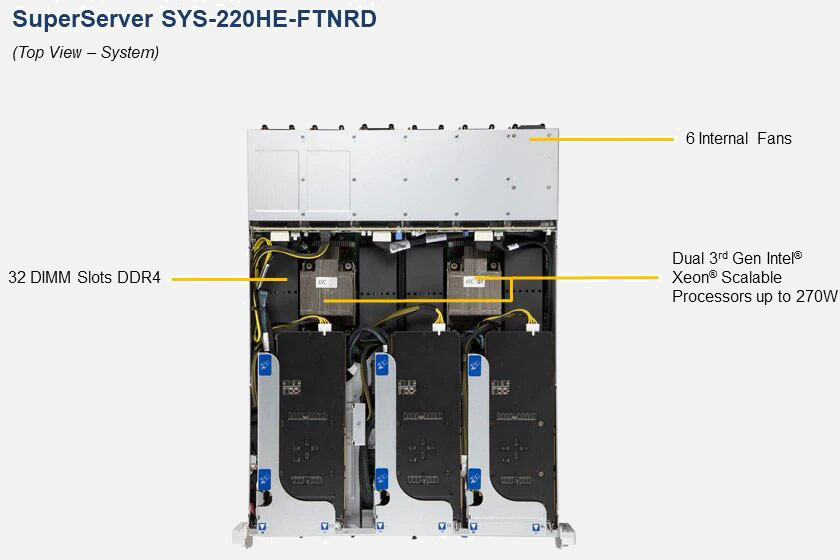 The Supermicro Hyper SuperServer SYS-220HE-FTNRD | SYS-220HE-FTNRD features hot-swap hard drives, giving you more flexibility and allowing you to remove drives without having to shut down the system.
