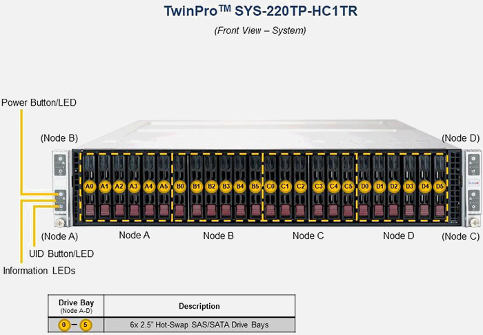 The Supermicro Twin SuperServer SYS-220TP-HC1TR | SYS-220TP-HC1TR features hot-swap hard drives, giving you more flexibility and allowing you to remove drives without having to shut down the system.