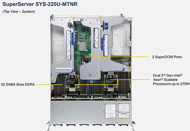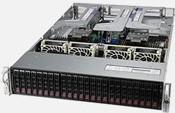 The Supermicro Ultra SuperServer SYS-220U-MTNR | SYS-220U-MTNR can be configured with 2.5" drives, a more space efficient and low noise option. These drives also offer energy savings and increased flexibility.