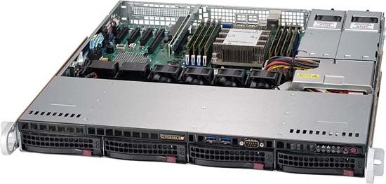 This system can be configured with up to a terabyte of RAM and 4x hot-swap 3.5 SATA drives. It also features 1x PCI-E x16 slot and 400W redundant platinum power supplies. For networking it has Dual 10GBase-T LAN with Intel X722 + X557. This server solution is ideal for web hosting, database applications, and application and data serving.