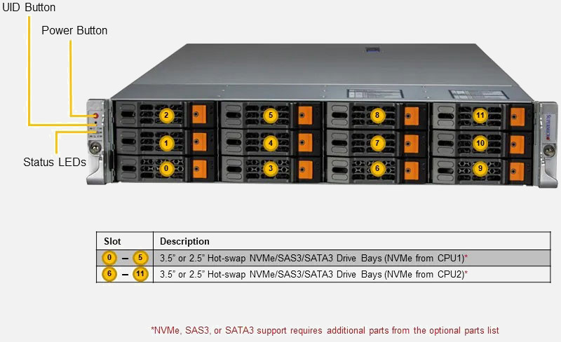 The Supermicro Hyper SuperServer 621H-TN12R | SYS-621H-TN12R features hot-swap hard drives, giving you more flexibility and allowing you to remove drives without having to shut down the system.