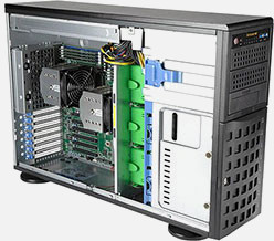 The Supermicro Super Workstation SYS-740A-T | SYS-740A-T features hot-swap hard drives, giving you more flexibility and allowing you to remove drives without having to shut down the system.