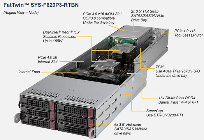 Four hot-pluggable systems (nodes) in a 4U form factor. Optimised for high capacity, ultra dense storage and virtualisation server.