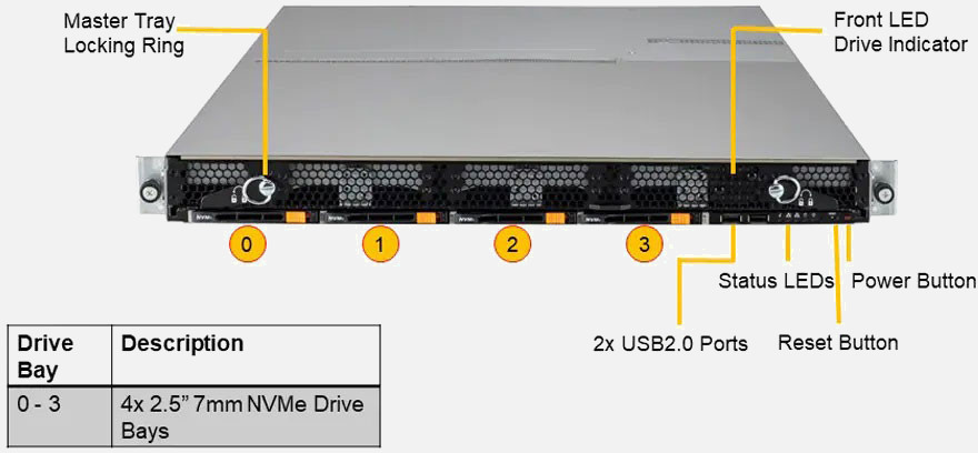 The Supermicro Storage A+ Server 1014S-ACR12N4H | ASG-1014S-ACR12N4H can be configured with reliable fixed drives which are a cheaper alternative to hot-swappable drives, lowering the overall cost of the system.