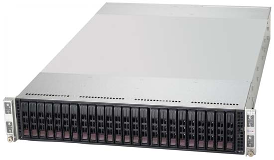 The Supermicro SuperStorage Server 2027R-AR24 | SSG-2027R-AR24 can be configured with 2.5" drives, a more space efficient and low noise option. These drives also offer energy savings and increased flexibility.