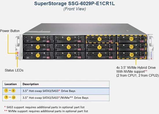 Configure the Supermicro SuperStorage 6029P-E1CR12L | SSG-6029P-E1CR12L with 3.5" drives. These drives are more cost-effective, offer a larger storage capacity and offer more flexibility.