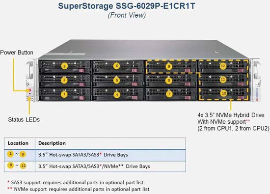 Configure the Supermicro SuperStorage 6029P-E1CR12T | SSG-6029P-E1CR12T with 3.5" drives. These drives are more cost-effective, offer a larger storage capacity and offer more flexibility.