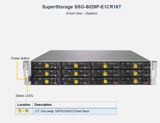 The Supermicro SuperStorage 6029P-E1CR16T | SSG-6029P-E1CR16T features hot-swap hard drives, giving you more flexibility and allowing you to remove drives without having to shut down the system.