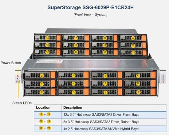 Configure the Supermicro SuperStorage 6029P-E1CR24H | SSG-6029P-E1CR24H with 3.5" drives. These drives are more cost-effective, offer a larger storage capacity and offer more flexibility.