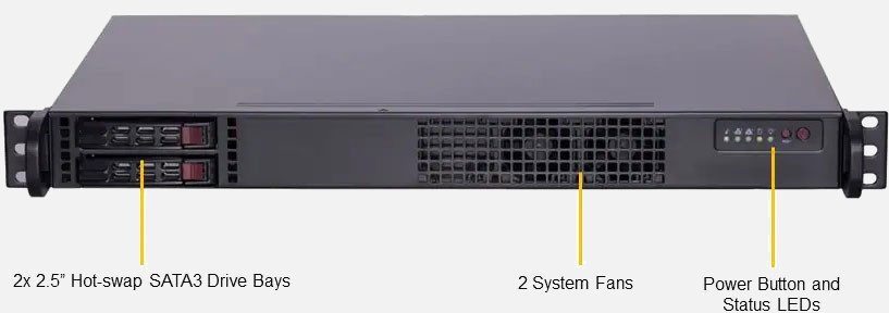 The Supermicro IoT SuperServer 111AD-HN2 | SYS-111AD-HN2 can be configured with reliable fixed drives which are a cheaper alternative to hot-swappable drives, lowering the overall cost of the system.