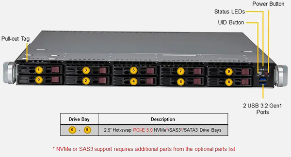 The Supermicro UP SuperServer 111E-WR | SYS-111E-WR can be configured with 2.5" drives, a more space efficient and low noise option. These drives also offer energy savings and increased flexibility.