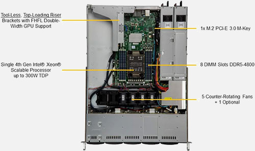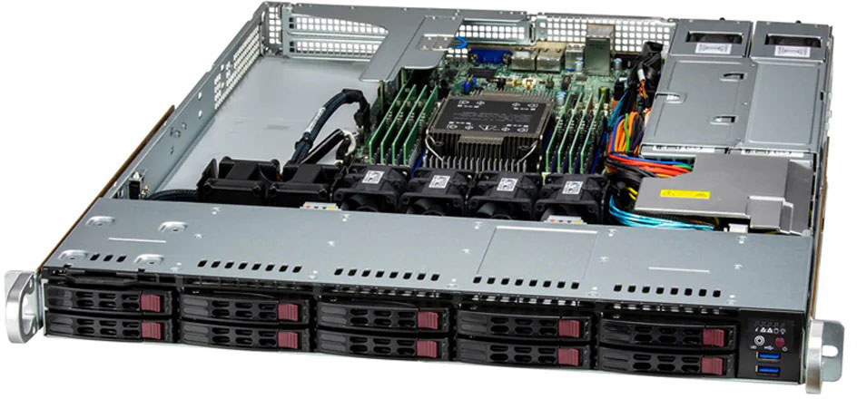 Ideal for virtualisation, cloud computing, enterprise server. 2x PCI-E 5.0 x16 slots, 1x PCI-E 5.0 x8 Slot. Redundant 800W/860W power supply, 10x 2.5" NVMe/SATA drives