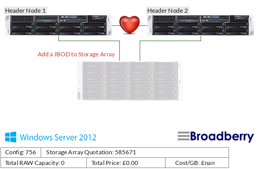 Each clustered server (referred to as a 'node') are connected by external SAS cables and the Windows Storage Server 2012 software. In event of one of these nodes failing another node takes over in providing the service with very little disruption to the uers, this is known as failover.