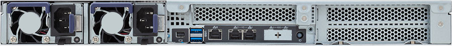 Single Intel Xeon 6 Series processors, redundant power supply, 4x 3.5"/2.5" SATA/SAS hot-swappable bays.