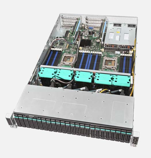 The Broadberry XE5-R224 2U Server with 24 Drive Bays - Intel R2224GZ4GCSAS boasts high density storage and ultimate energy efficiency, catering for up to 24x High-Performance 2.5" SSD or Hard Drives