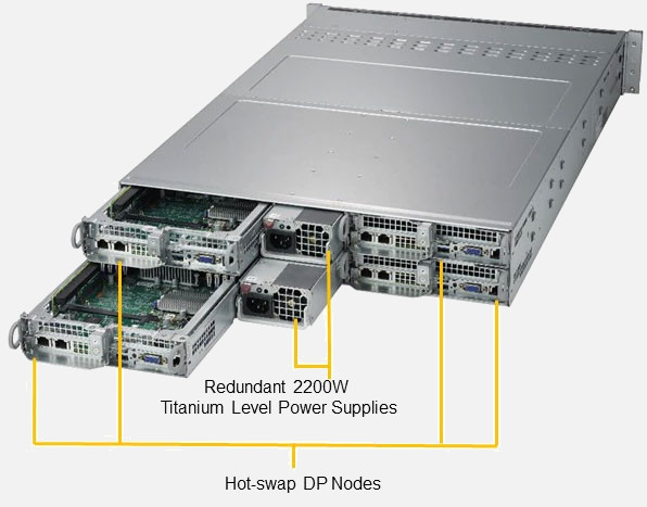 4 Node 2U Xeon Server, Optimised for Mission Critical Applications and HPC, Configure with 3.5” Hot-swappable Drive Bays.