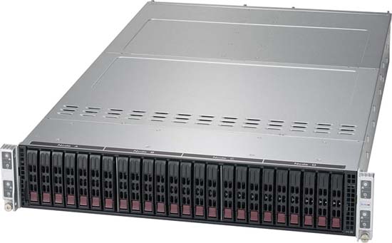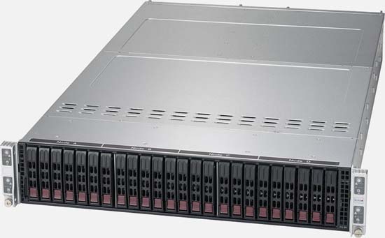 The CyberServe Xeon SP2-2029TP 4 Node 2U Server supports 24x 2.5" desktop and enterprise-class SATA hard drives, which represents the best cost per GB ratio storage technology.