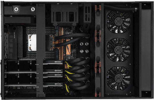 4U/Tower Liquid Cooled Workstation/Server, Ideal for AI, Deep Learning and Rendering, Single Intel Xeon W Series processor, Supports up to 6x GPUs, 512GB of RAM & 2TB SSD.